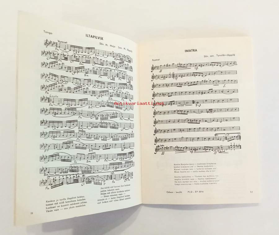 Piano nuotit ja sanat.