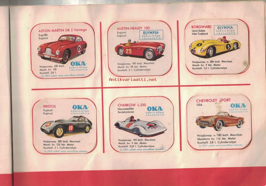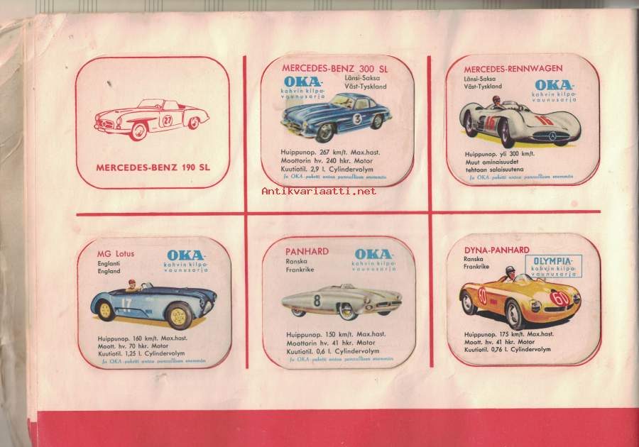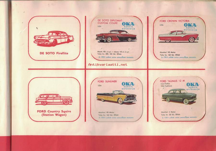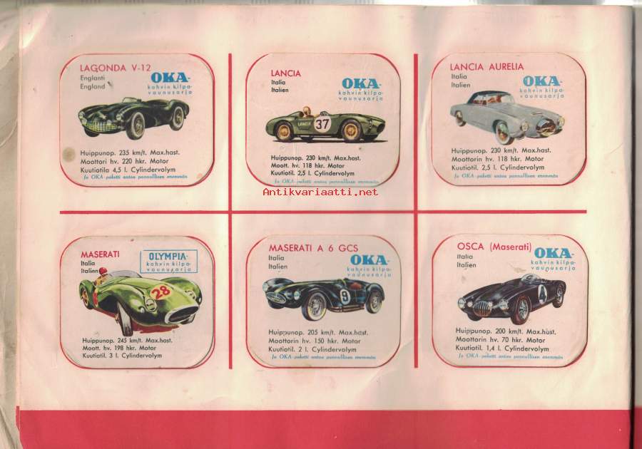 OKA:n keräilykansio - sisältää OKA kahvipakettikuvia 60 kpl -collectible cards