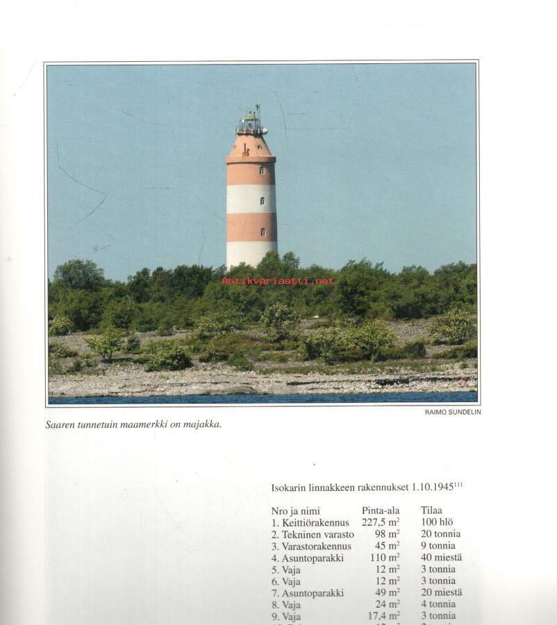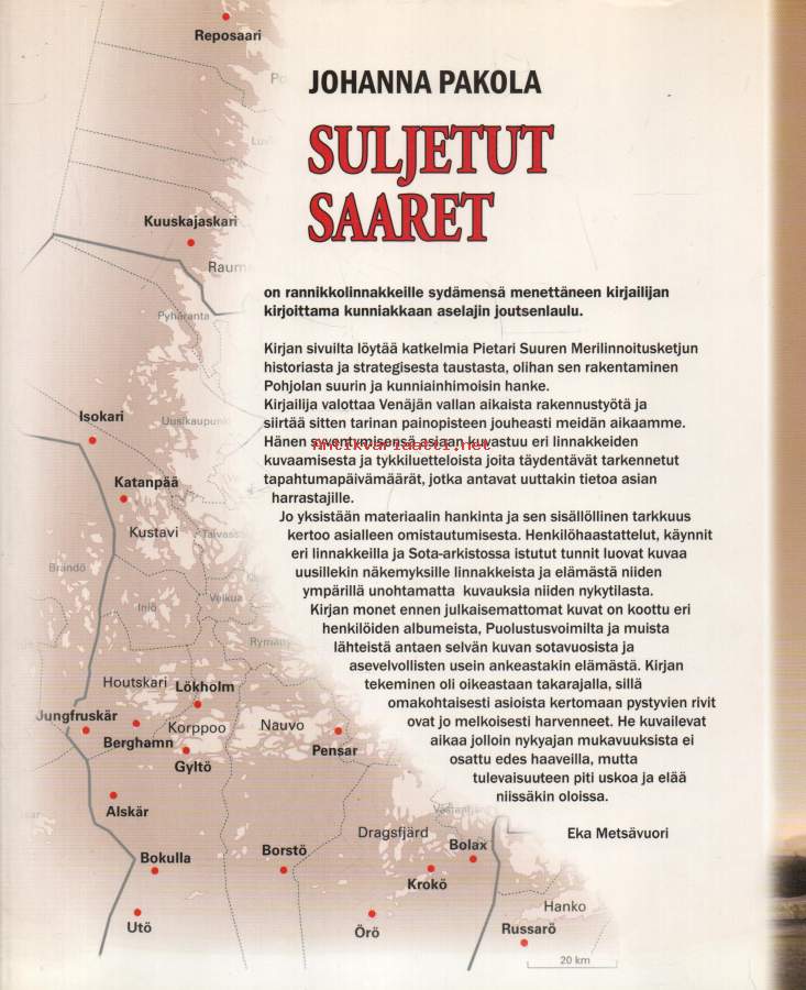 Kirja kertoo saariston linnakkeista ja sotilasalueista. Tykistö. Merilinnoitusketju