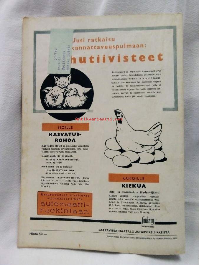 Salaojitusvihko Pellervo 1963 ja voita Fergu lappu