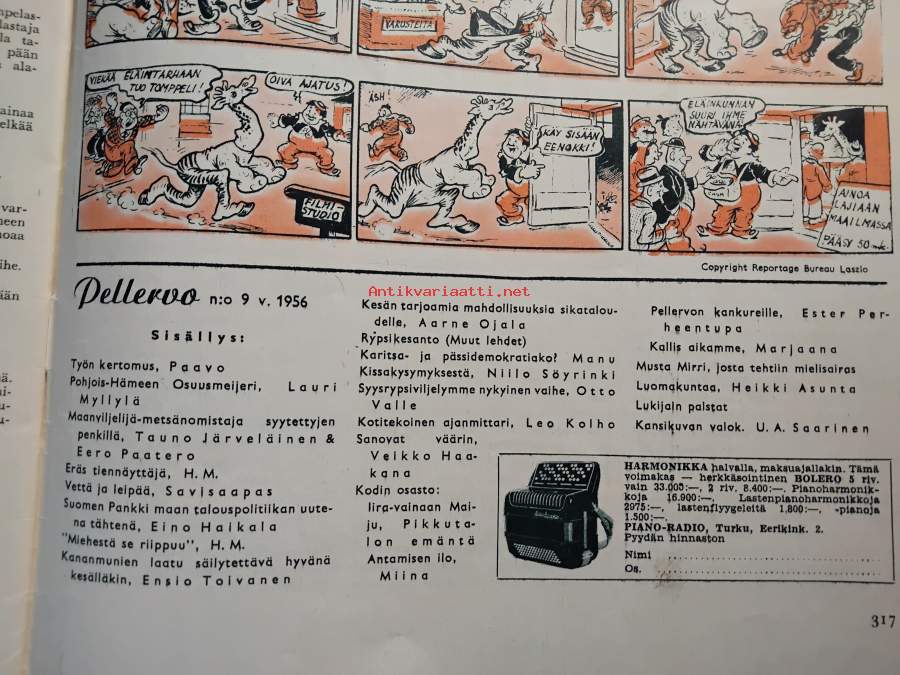 Ilmestynyt 30.6.1956, 40s., sisällysluettelo kuvassa, kannessa suomenhevonen hevonen