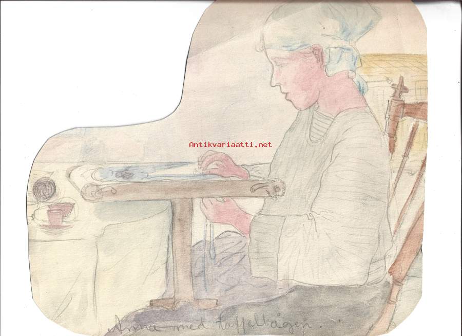 Signe Gröndal "Anna med taffellågen" akvarelli koko nA4 kehystämätön