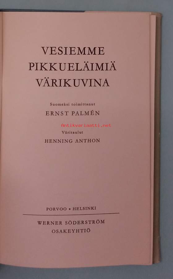 Teos esittelee Suomen järvissä, joissa ja muissa sisävesissä asustavia pieniä eläimiä, kuten kotiloita, selkärangattomia ja alkueläimiä - keskiössä ovat Henning Anthonin laatimat tarkat väritaulut. Dimensiot 18 ¤ 12 cm