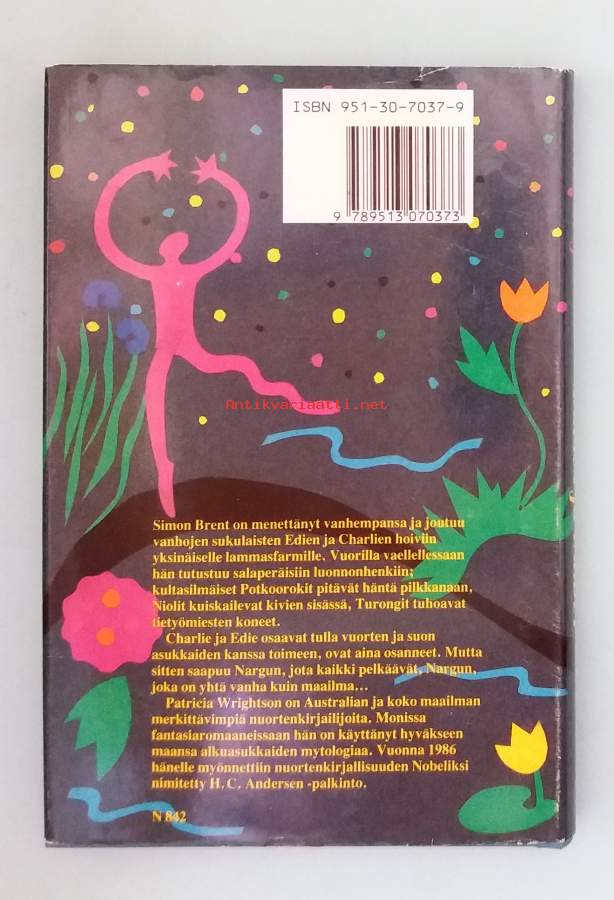 Tarinan keskiössä on Nargun, ikivanha ja lähes voittamaton kiviolento, joka on herännyt ja uhkaa tuhota kaiken tieltään. Simonin on löydettävä keino pysäyttää Nargun suojellakseen uutta kotiaan ja sen asukkaita....... Palkittu vuoden lastenkirjana vuonna 1974. Dimensiot 20 ¤ 14 cm.