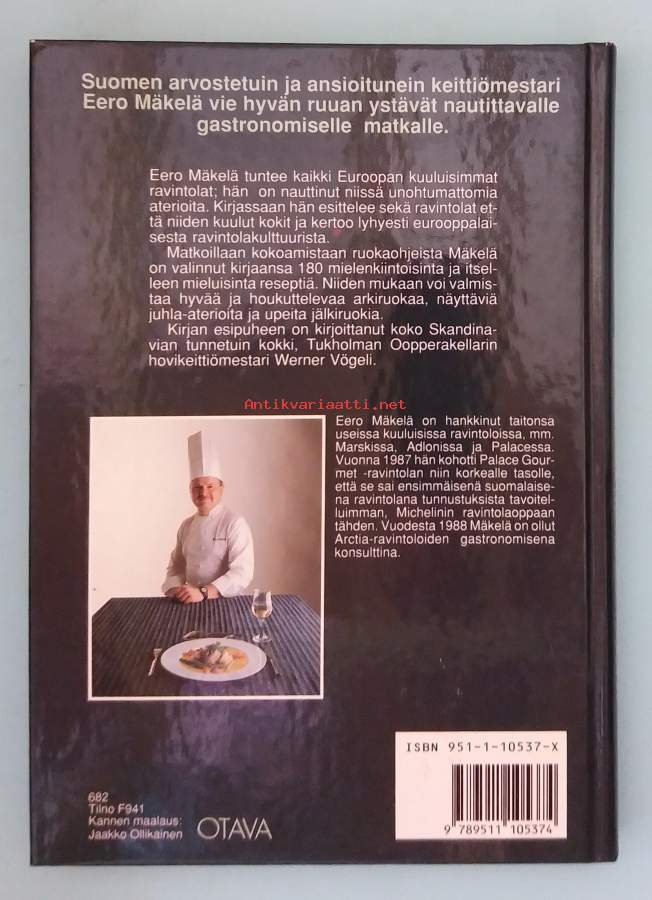 Suomen arvostetuimpiin keittiömestareihin kuuluva Eero Mäkelä vie lukijan matkalle Euroopan kuuluisiin ravintoloihin antaen ruokaohjeita ja tietoa ruokakulttuurista. Kuvitettu. Dimensiot 24 ¤ 17 cm.