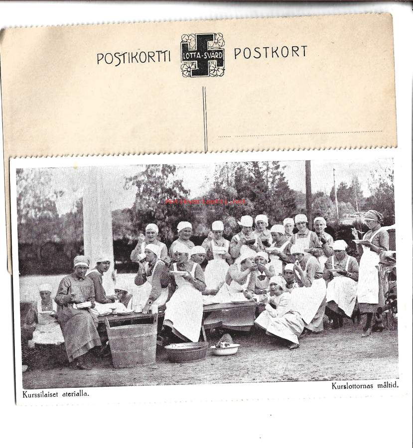 Lotat aterialla - sotilaspostikortti lotta postikortti - kulkematon