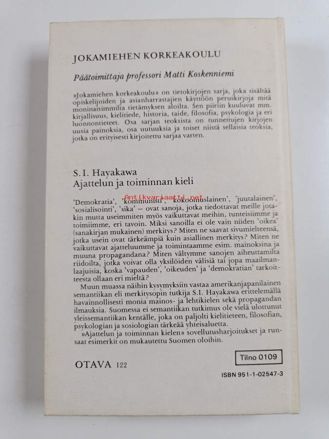 Merkinnät: omistajamerkintäSarja: Jokamiehen korkeakouluAlkuteos: Language in thought and actionAsiasanat: semantiikka