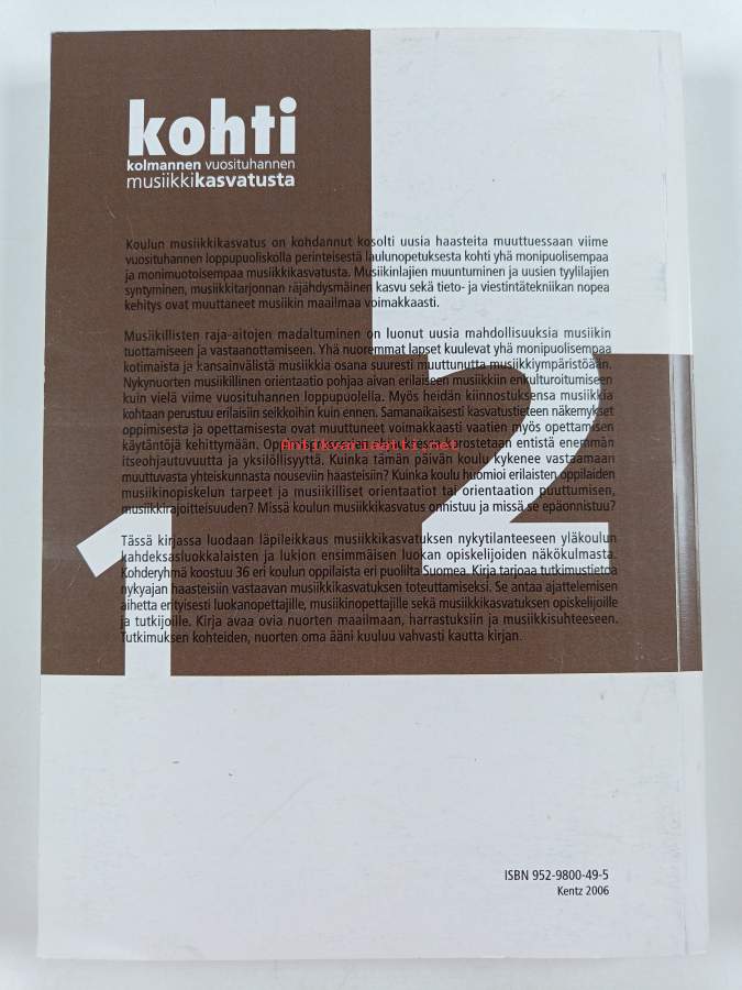 Muu(t) tekijä(t): Antti JuvonenSarja: Kohti kolmannen vuosituhannen musiikkikasvatusta Osa 3Asiasanat: musiikki, lukio, arviointi, nuoret, asenteet, peruskoulu, minäkuva, opetus, oppiminen, koulut, opiskelijat, mielipiteet, oppilaat, musiikkikasvatus, kehitys, opettaja-oppilassuhde, musiikinopettajat, opiskelumotivaatio, musikaalisuus, kuuntelutottumukset, musiikkimaku, orientoituminen, musiikkikorkeakoulut