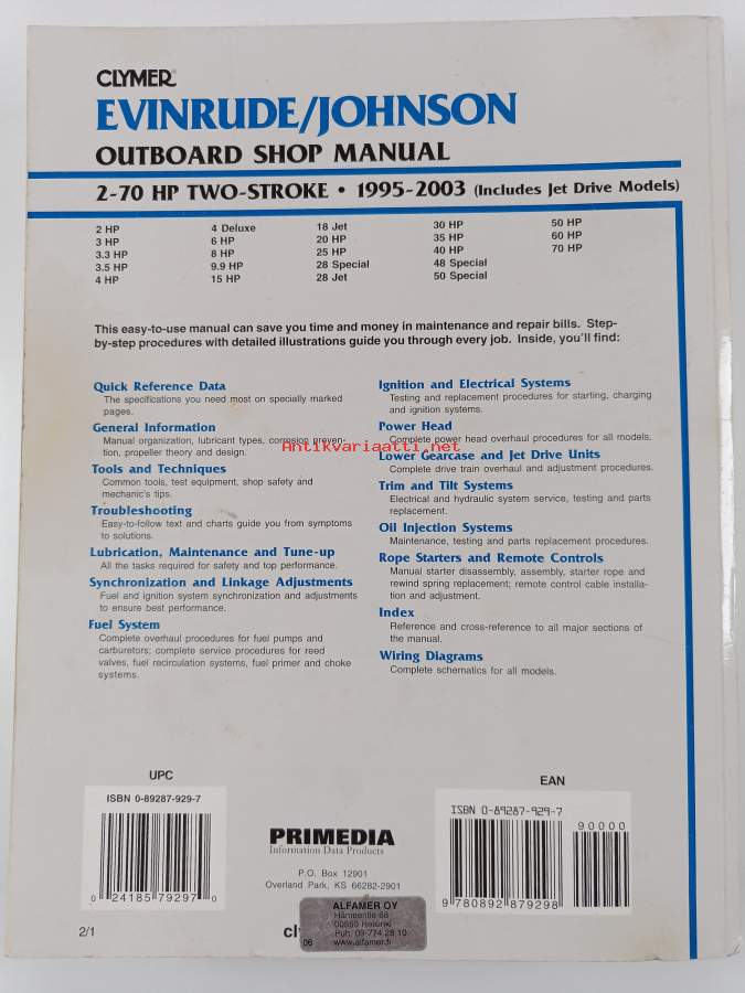 Merkinnät: omistajamerkintä (tarra)Sarja: Clymer's official shop manual B735Asiasanat: korjaus, huolto, moottoriveneet, veneet, moottorit, perämoottorit