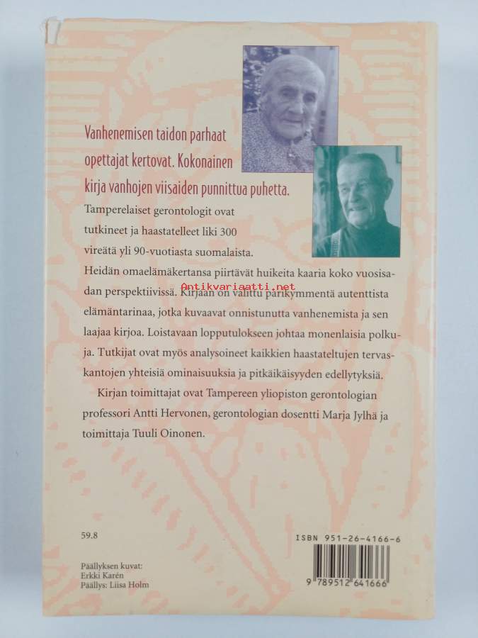 Merkinnät: omistajamerkintäAsiasanat: muistelmat, elämäntaito, vanhukset, pitkäikäisyys