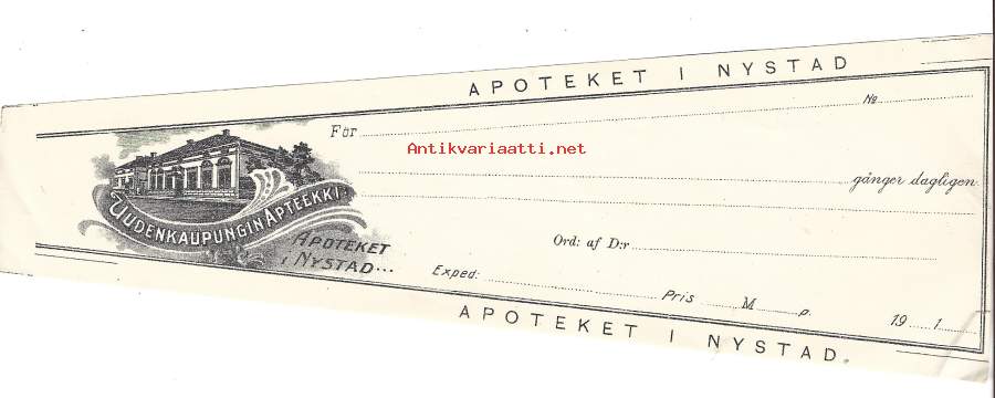 Uudenkaupungin Apteekki, resepti signatuuri blanko