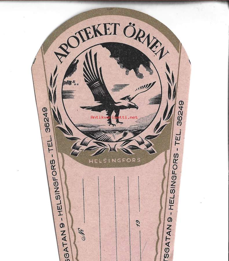 Wilhelms Apotek , Helsinki - reseptiliuska reseptipussi 1943