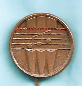 Virsimerkki / Suomen Kirkkomusiikkiliitto ryherättää ja ylläpitää kiinnostusta kirkkomusiikkiin neulamerkki rintamerkki