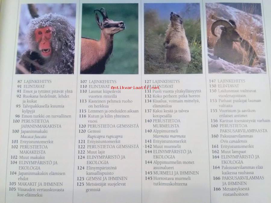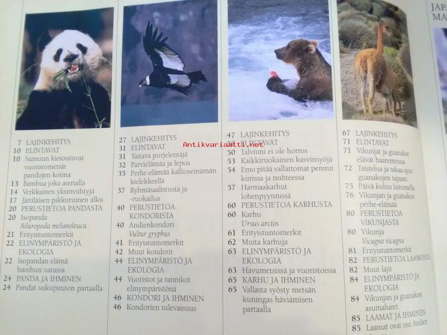 Vuoristot : panda, kondori, karhu, laamat, japaninmakaki, gemssi, murmeli, paksusarvilammas