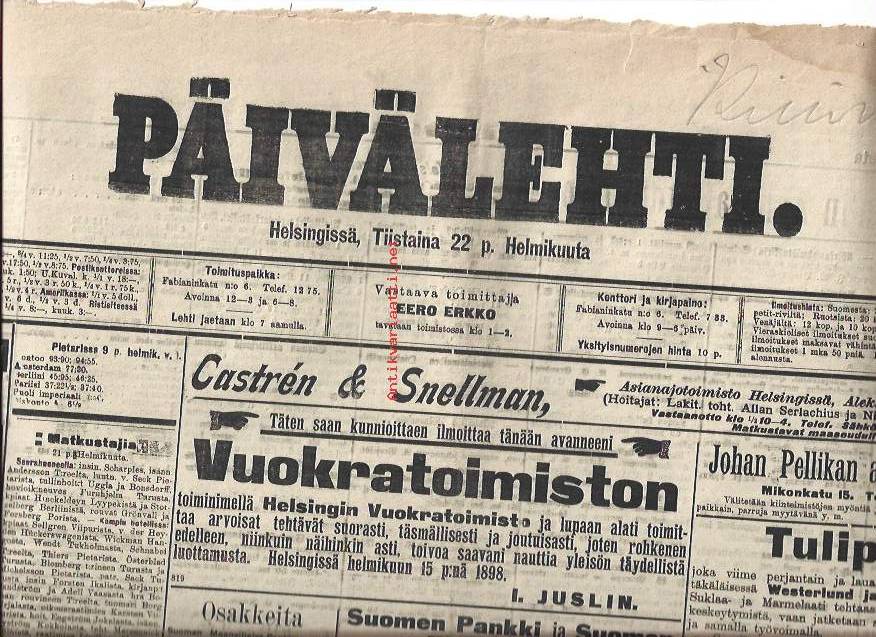 Päivälehti 22.21898 sanomalehti
