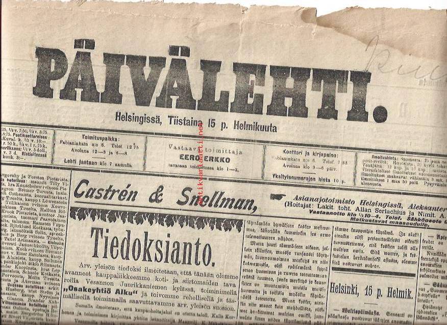 Päivälehti. Helsingin sanomat