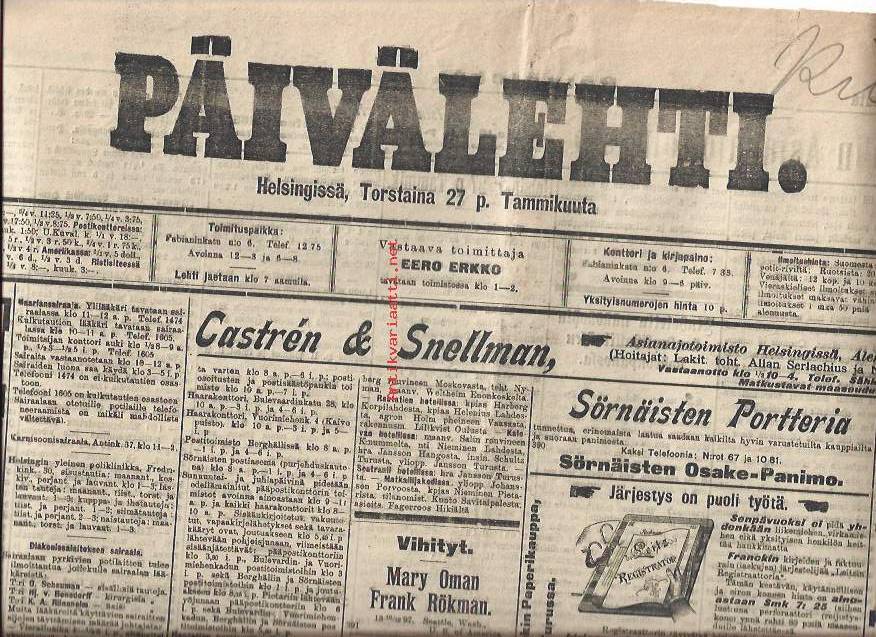 Päivälehti. Helsingin sanomat