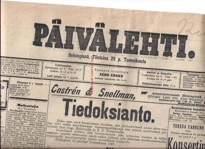 Päivälehti 25.1.1898 sanomalehti