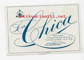 La Chica - tupakkaetiketti. Hämeen Tupakkatehdas Oy Hämeenlinna.