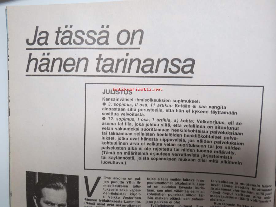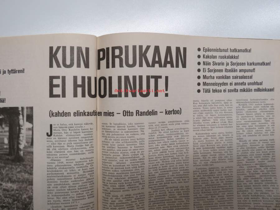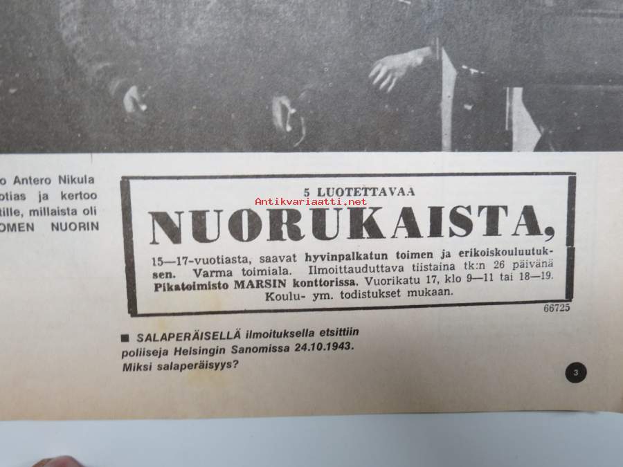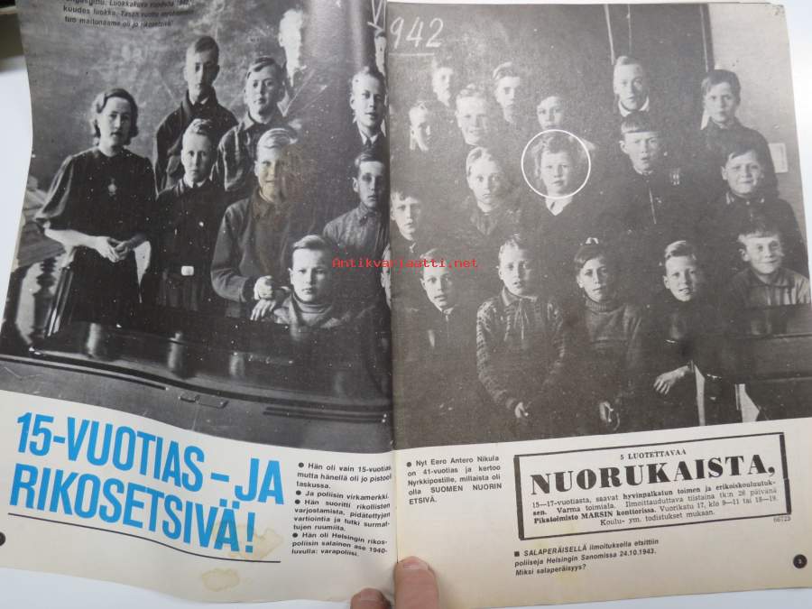 SS-mies Yrjö Nyystelä (koulutusta Norjassa 1945), Onko armeija itsemurhien tyyssija?, Hannu Salama pidätettiin Tukholmassa, Otto Randelin - murhaaja "lastenkodista rintamalle" - kaksi elinkautista, Veikko Vesterinen ja Lammin Työlaitos, Julkinen Teurastamo - härkätaistelu, Lehtivalokuvaajat mm. Caj Bremer - Arto Jousi - Martti Brandt - Pentti Koskinen - Olavi Kaskisuo, Hannu Salama pidätettiin Tukholmassa, ym.