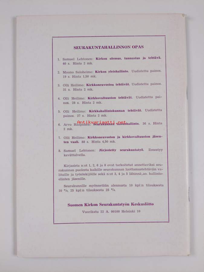 Kirkon koulutuskeskus &: Kirkon perheasiain keskus & Kirkon sairaalaseilunhoidon keskus 1989