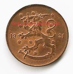 5 penniä 1921 kolikko