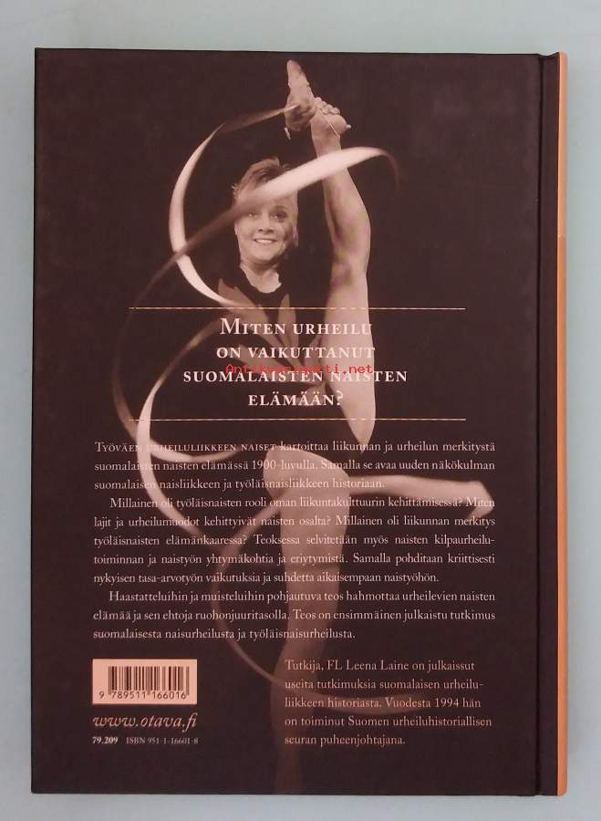 Urheiluhistoriikki käsittelee työväen urheiluliikkeen naisten historiaa, heidän toimintaansa, asemaansa ja vaikutustaan suomalaisen urheilun ja järjestötoiminnan kehitykseen. Kuvitettu. Dimensiot 24 ¤ 18 cm.