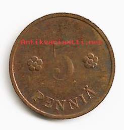 5 penniä 1937 kolikko