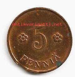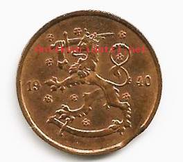 5 penniä 1940 kolikko tekovika reunavajaus