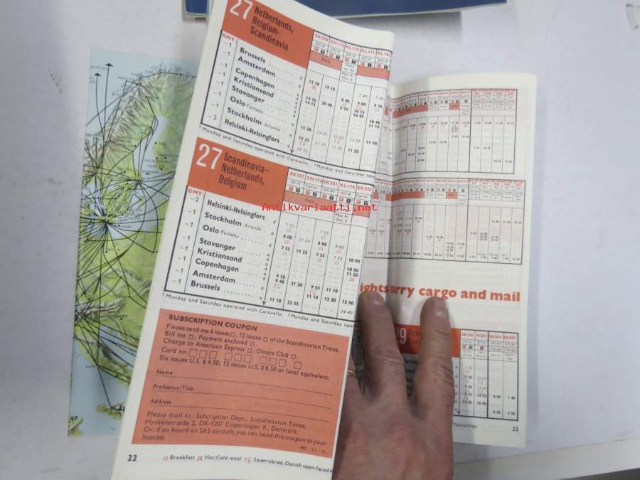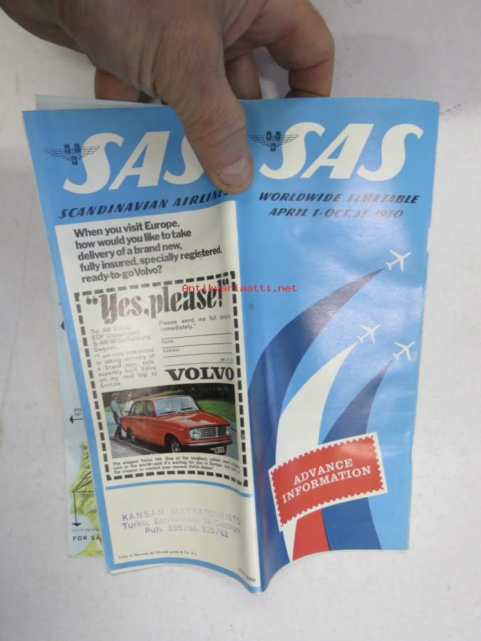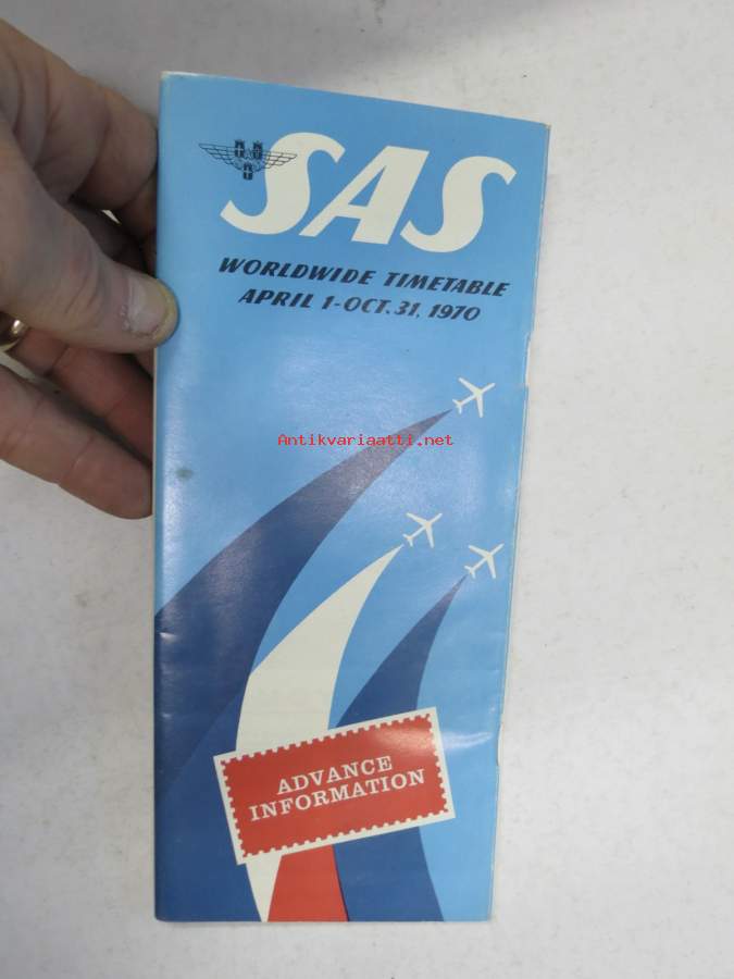 SAS Timetable Worldwide April 1-Oct. 3, 1970 -lentoyhtiön aikataulu