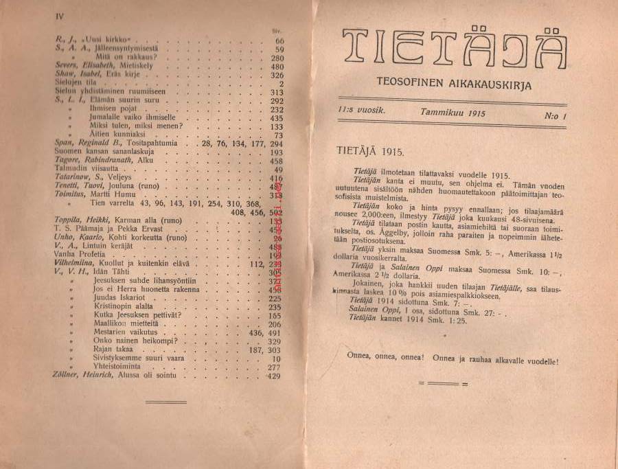 Tietäjä -Teosofinen aikakauskirja 1-12 1915