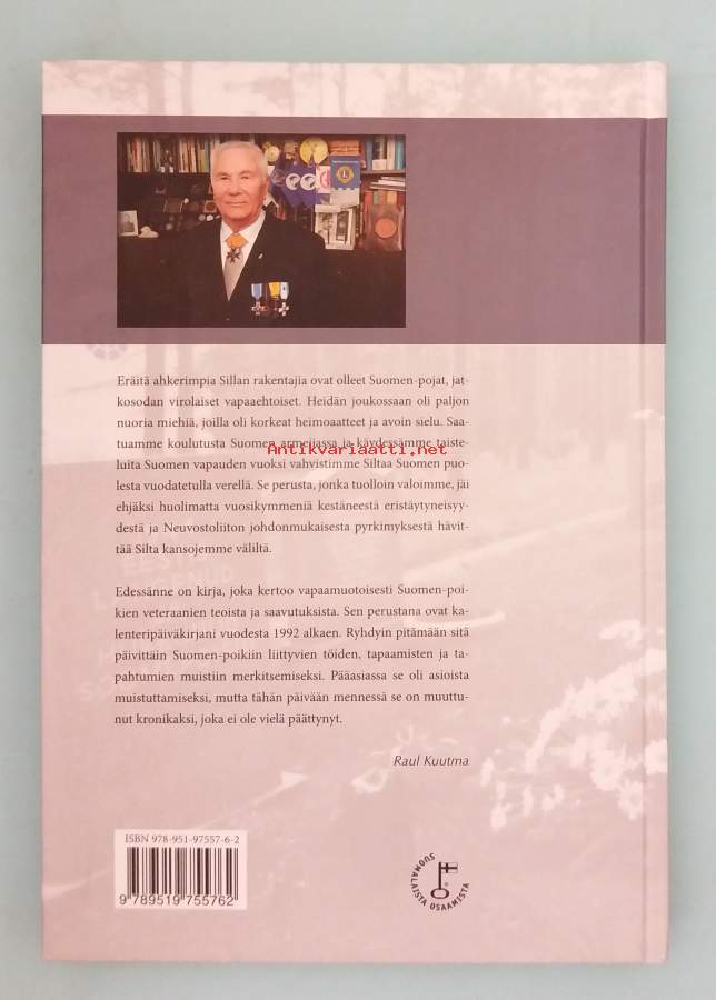 Historiikki teos kertoo kahdenkymmenen vuoden ajalta Suomen ja Viron välisestä veteraani‑ ja vapaaehtoistoiminnasta, erityisesti “Suomen‑pojista” eli jatkosotaan vapaaehtoisina osallistuneista virolaisista. Kuvitettu. Dimensiot 25 ¤ 18 cm.