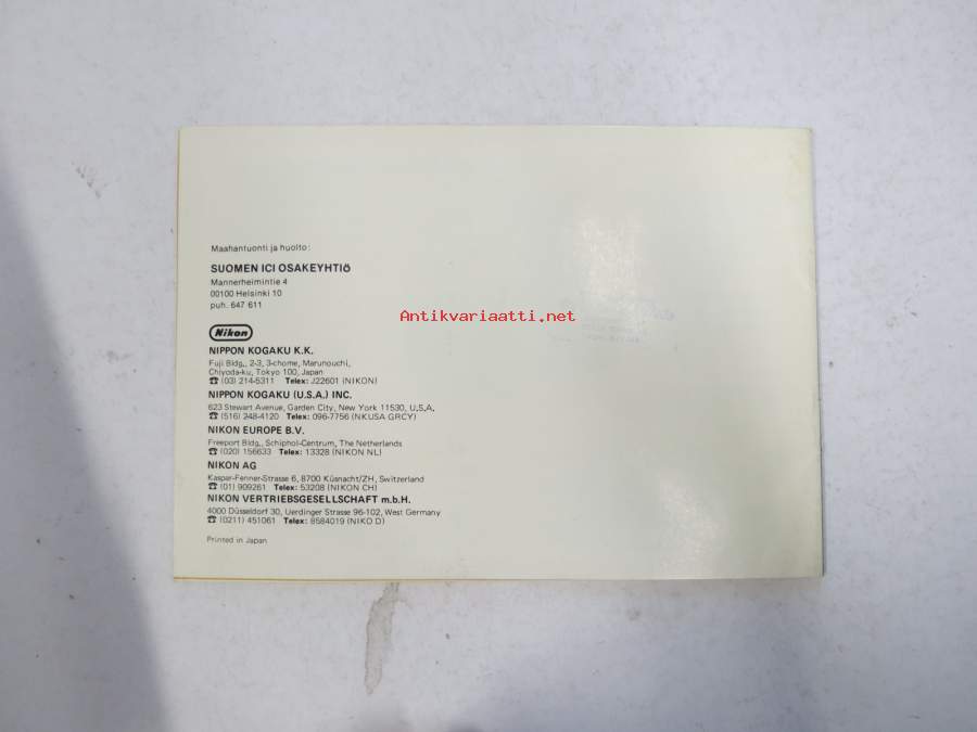 Nikon Nikkormat FTN instruction manual -kamera, käyttöohjekirja, suomenkielinen