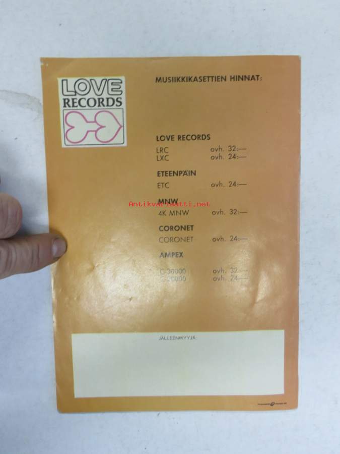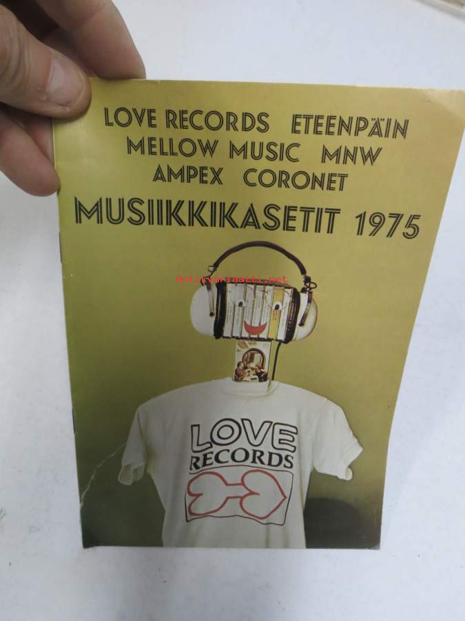 Love Records / Eteenpäin / Mellow Music / MNV / Ampex / Coronet musiikkikasetit 1975 -myyntiesite, kuvattu kansineen