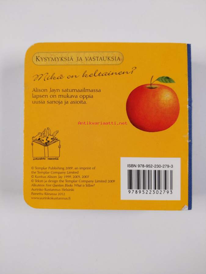 Sarja: Kysymyksiä ja vastauksia; Lukuhetki yhdistääAlkuteos: What is yellow?Asiasanat: lastenkirjallisuus, värit, kuvakirjat, paksulehtiset kirjat