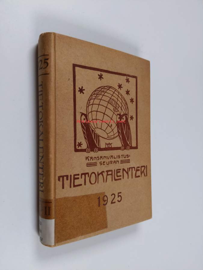 Kansanvalistusseuran Kalenteri 1919, sis. runsaasti mainoksia, artikkeleita, tilastotietoa, rautateitten ja postin kulku, virkamiehistö, puolueet,