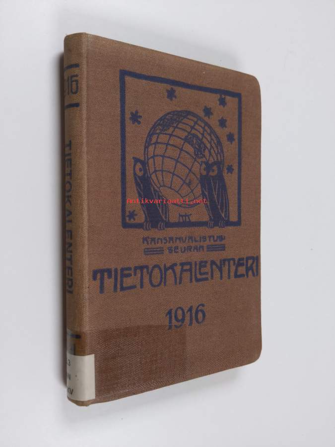 Kansanvalistusseuran Kalenteri 1919, sis. runsaasti mainoksia, artikkeleita, tilastotietoa, rautateitten ja postin kulku, virkamiehistö, puolueet,