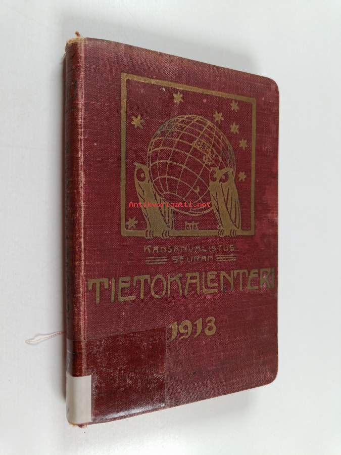 Kansanvalistusseuran Kalenteri 1919, sis. runsaasti mainoksia, artikkeleita, tilastotietoa, rautateitten ja postin kulku, virkamiehistö, puolueet,