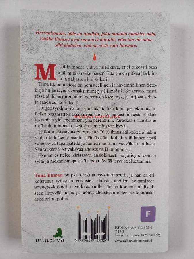 Asiasanat: itsetunto, itseluottamus, pelot, ahdistus, minäkuva, ammattitaito, osaaminen, alemmuudentunne, vähättely