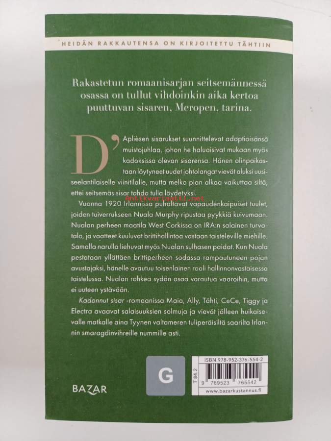 Muu(t) tekijä(t): Hilkka Pekkanen, Tuukka PekkanenSarja: Seitsemän sisarta 7Alkuteos: The Missing Sister