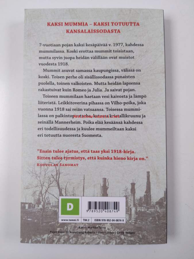 Asiasanat: kaupungit, lapsuus, Suomen sisällissota, traumat, muistot, isoäidit, kesänvietto, pojat (perheenjäsenet), lapsinäkökulma, aikatasot, mummolat