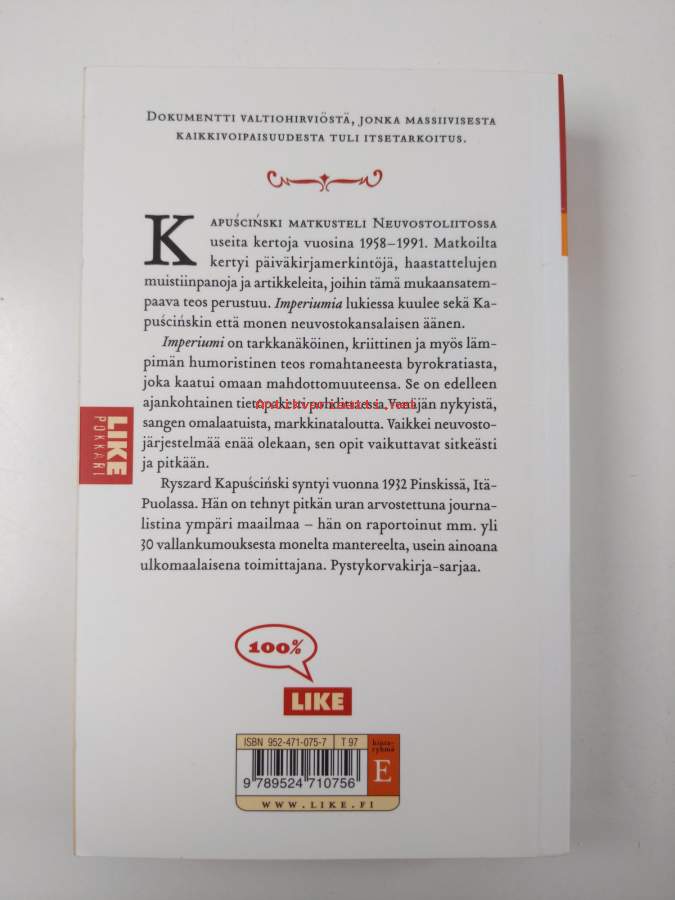 Sarja: Like-pokkari 67Alkuteos: ImperiumAsiasanat: matkakertomukset, historia, yhteiskuntakuvaus, yhteiskunnallinen muutos