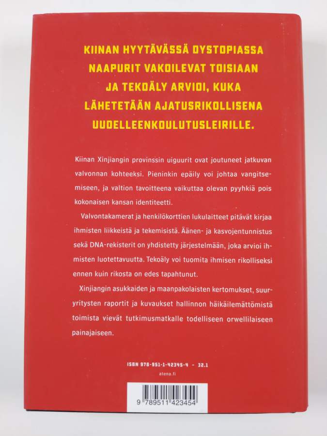 Muu(t) tekijä(t): Riina VuokkoAlkuteos: The perfect police stateAsiasanat: keskitysleirit, yhteiskuntaolot, tekoäly, valvonta, vähemmistöt, kansalaiset, totalitarismi, poliisivaltio, tekninen tarkkailu, uiguurit, assimilaatio (sosiologia)