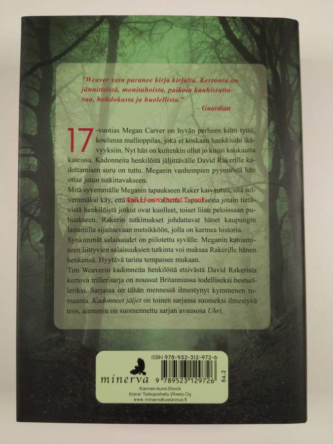 Muu(t) tekijä(t): Maikki SoroSarja: David Raker -sarja 2; Minerva crimeAlkuteos: The dead tracksAsiasanat: tytöt, metsät, rikokset, etsintä, kadonneet, salaisuudet, yksityisetsivät