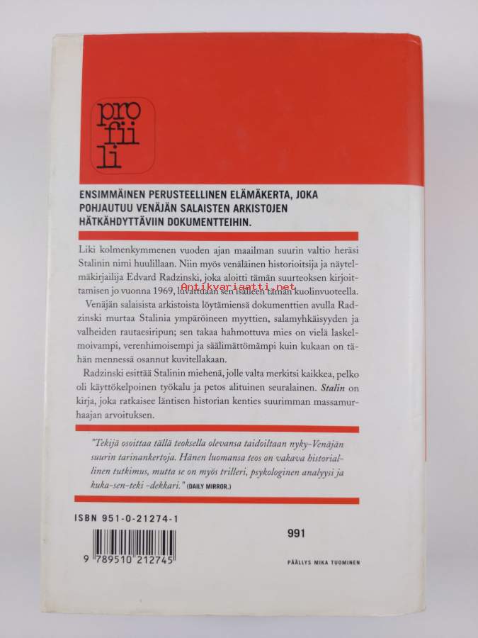 Muu(t) tekijä(t): Kari KlemeläSarja: Profiili-sarjaAlkuteos: StalinAsiasanat: elämäkerrat, poliittinen historia, poliittiset johtajat, valtionpäämiehet