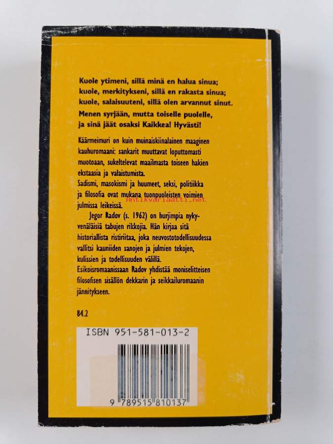 Hyvä. Pientä käytön jälkeä kansissa, takana hintalapun jäämää, selkämyksessä aavistus vinoutta