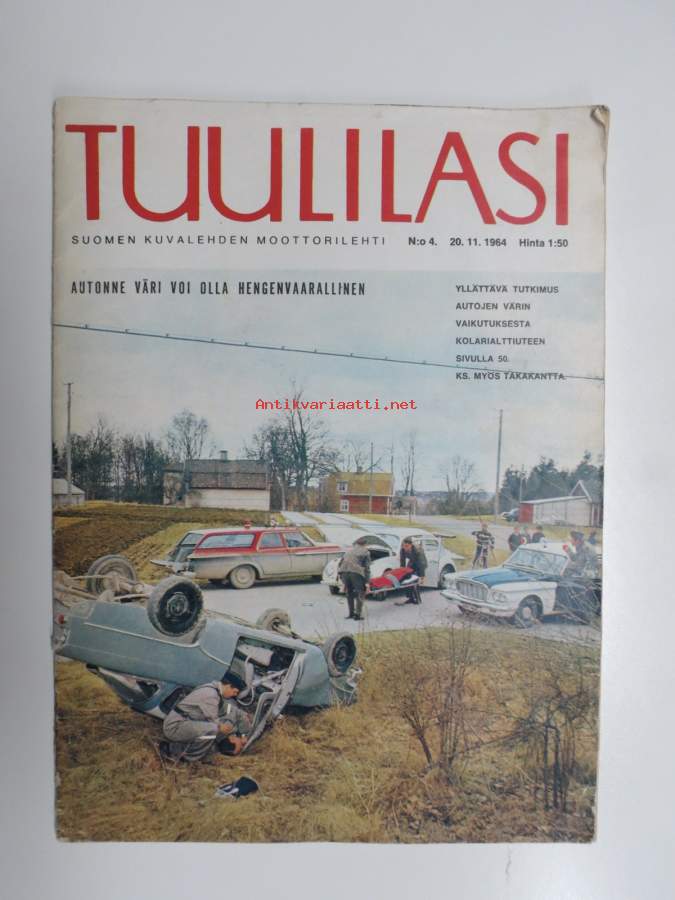 Tuulilasi 1964 nr 4, Yllättävä tutkimus, autojen värin vaikutuksesta kolarialttiuteen, Monte Carlon raharalli, Rengas repeää, Glas 1204, Koeajo mm. Ford Mustang, ym