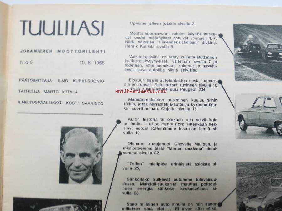 Tuulilasi 1965 nr 5, Simca 1500, Kuljettajatutkinto, Moottorin rengastus, Koeajo Chevelle Malibu, Polttoainekennoauto - kuinka kaukana?, Jalta ZAZ-965 AE, Le Mans ym