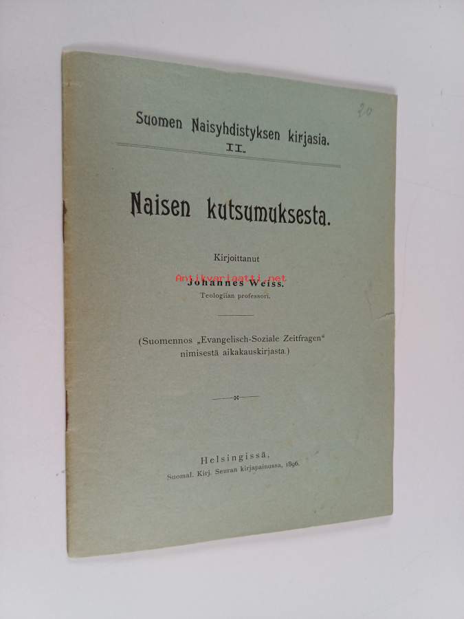 Merkinnät: omistajamerkintäSarja: Suomen naisyhdistyksen kirjasia 2Asiasanat: naisen asema
