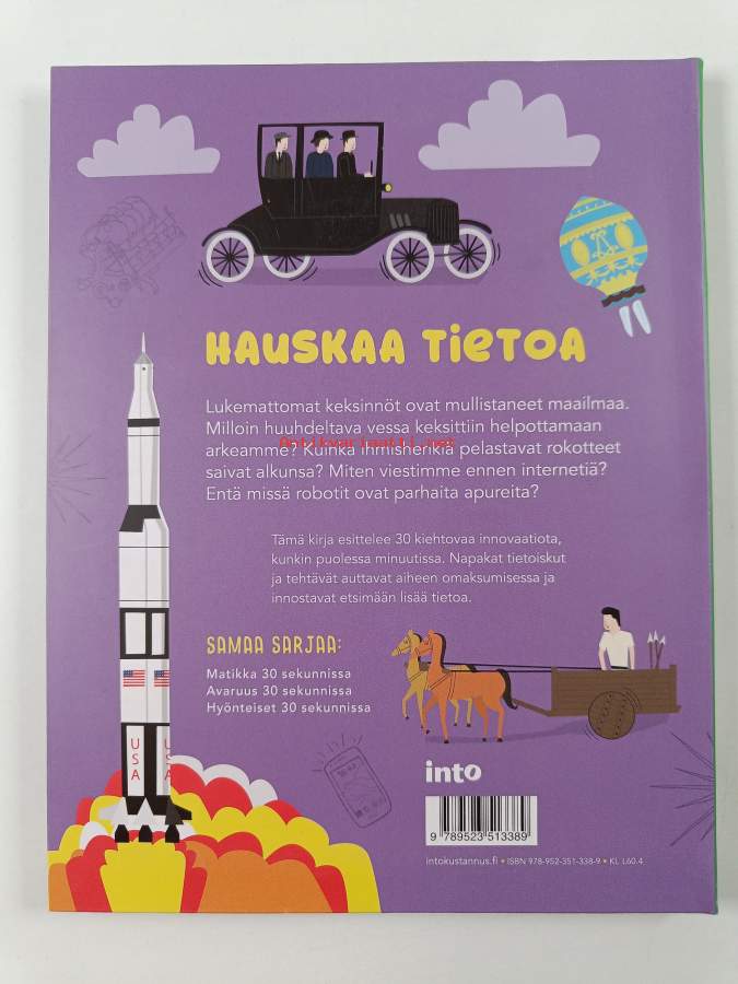 Muu(t) tekijä(t): Tarja Kontro, Chris AndersonSarja: 30 sekunnissaAlkuteos: Inventions in 30 SecondsAsiasanat: historia, keksinnöt, teknologinen kehitys, teknologia, tiede, innovaatiot, tehtävät